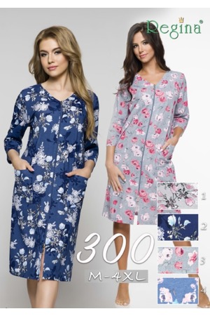 Bavlněný květovaný dámský župan. Model má 3/4 rukávy a zapíná se zipem.