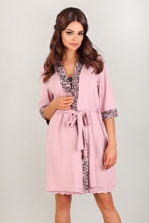 Měkký dámský župan, který je vyrobený z velmi kvalitního materiálu v růžové barvě. Župan se krásně přizpůsobuje jakékoliv velikosti bříška. Rukávy modelu jsou ozdobené potištěnou látkou. Model se v pase zavazuje. Tento župan ocení každá nastávající maminka nejenom při pobytu v nemocnici, ale také v době péče o děťátko. Model vám dobře poslouží jako župan, ale také jako přehoz přes obleční v nemocnici.