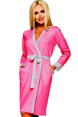 Dámský bavlněný župan 321 Taro - z kvalitní jemné bavlny v růžové barvě - zavazování v pase - na úrovni boků jsou kapsy