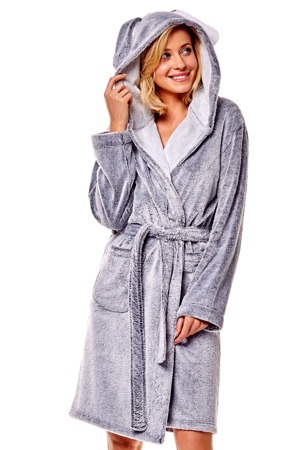 Pohodlný dámský župan 36164 Mia Esotiq - ušitý z měkkého materiálu - na kapuci jsou veselá ouška - v pase je na zavázání