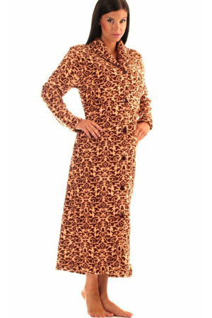 Dámský župan tradiční české značky Vestis, z kolekce Victoria. Elegantní vintage vzor v barevné kombinaci jantaru a pálené umbry. Postavě lichotící velmi lehce projmutý střih se zapínáním na knoflíky v dlouhém provedení. Župan je vyrobený z příjemného měkkého materiálu s oboustranným kratším vlasem. Pohodlný teplý župan, ve kterém vám bude příjemně. Župany Vestis jsou hezké a hlavně kvalitní. Muži je kupují ženám jako dárek a ženy si je kupují, aby se mužům líbily...