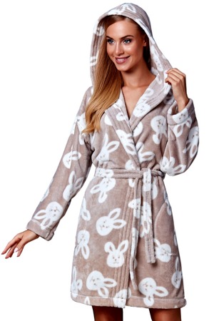 Klasický dámský župan 7101 L&L - z hřejivého hebkého mikroplyše - župan s kapucí, zavazuje se v pase na pásek - na bocích kapsy