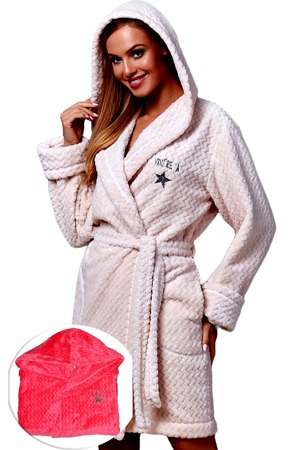 Klasický župan 7117 L&L s puntíky - z hřejivého hebkého mikroplyše - župan s kapucí, zavazuje se v pase na pásek - na bocích kapsy
