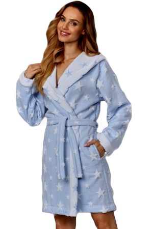 Dámský župan s kapucí 8128 L&L - ušitý z příjemného měkoučkého materiálu - po stranách jsou kapsy - zavazování je na pásek