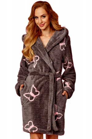 Dámský župan 8129 L&L - velmi příjemný materiál - s kapuce - má po stranách dvě kapsy - zavazuje se na pásek přidržovaný poutky - je pohodlný a rychleschnoucí