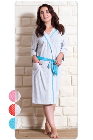 Dámský bavlněný župan krátký Anežka. Župan je s tříčtvrtečním rukávem, výstřih je olemován barevnou stužkou a zavazuje se na barevný pásek. Na předním díle jsou našité dvě kapsy. Bavlněný materiál je poddajný a jemný na dotek. Dámský župan je vhodný i na denní nošení.Materiály použité u tohoto výrobku jsou certifikovány, dosáhly nejvyšší možné kvality. Pokyny pro údržbu: - 70% bavlna, 30% polyester- lze prát v pračce při teplotě do 30°- nesušit v sušičce- žehlit z rubu do 110°- nepoužívat bělící prostředky- nečistit chemicky S výběrem správné velikosti by Vám měla pomoci tato tabulka: Velikost županu 1 XL 2 XL 3 XL 4 XL Délka županu 101 102 103 104 Obvod hrudníku 122 128 134 142