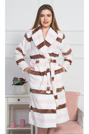Dámský župan dlouhý se šálovým límcem Pruhy. Elegantní dlouhý župan se zajímavým potiskem různobarevných pruhů má praktické kapsy a pásek na převázání. Použitý materiál je jemný a poddajný na dotek. Župan je vhodný i na denní nošení, oceníte ho obzvášť v chladných dnech...