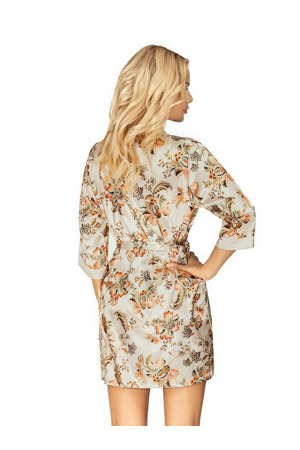 Vzdušný saténový dámský župánek, který je ozdobený efektním vzorem. Župan má krátké rukávy a v pase se zavazuje...