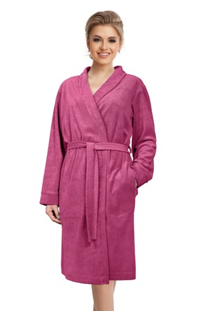 Pohodlný a komfortní dámský župan, který je vyrobený z froté příjemného na dotyk. Límec modelu zdobí výšivka. Župan se v pase zavazuje. Složení: 80 % bavlna, 20 % polyester.