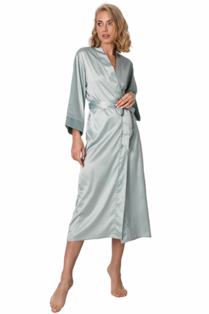 Dlouhý a elegantní dámský župan:- z hladkého a jemného saténu- dlouhý, volný rukáv- vázání v pase...