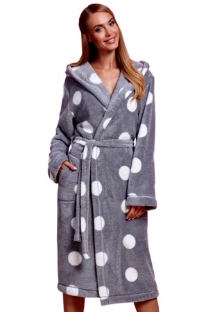 Klasický dámský župan Kola L&L - z hřejivého hebkého mikroplyše - župan s kapucí, zavazuje se v pase na pásek - na bocích kapsy