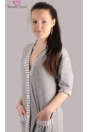 Dámský krátký župan Tamara. Jednobarevný župan se zapínáním na knoflíky. Na předním díle jsou našité dvě kapsy. Župan je vyroben z poddajného polyesterového materiálu jemného na dotek. Dámský župan je vhodný i na denní nošení. Pokyny pro údržbu: - 70% polyester a 30% viskóza- lze prát v pračce při teplotě do 30°- nesušit v sušičce- žehlit z rubu do 110°- nepoužívat bělící prostředky- nečistit chemicky S výběrem správné velikosti by Vám měla pomoci tato tabulka: Župan krátký S/M M/L L/XL Délka rukávu 26 27 28 Délka županu 95 96 97 Obvod hrudníku 100 118 122