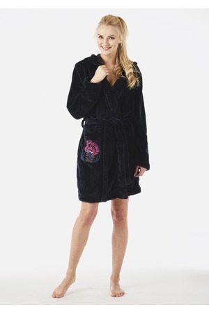 Neobyčejný dámský župan, který je vyrobený z výjimečně sametové látky. Látka působí na dotyk jako hedvábí. Moderní potisk je inspirovaný lidovým uměním z okolí polského Krakova.