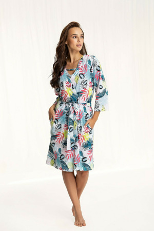 Krátký dámský župan, který je vyrobený z velmi kvalitní bavlny. Župan se v pase zavazuje a na úrovni boků má pohodlné kapsy...