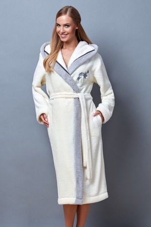 Dlouhý dámský župan s kapucí Fee L&L na prsou ozdobený ...