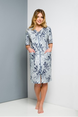 Dámský župan, který je vyrobený z tenké vzorované bavlny.Župan se zapíná na dvojitý zip (zip je možné rozepnout z vrchního i ze spodního okraje). Na úrovni beder jsou dvě pohodlné kapsy.Složení: 100 % bavlna.