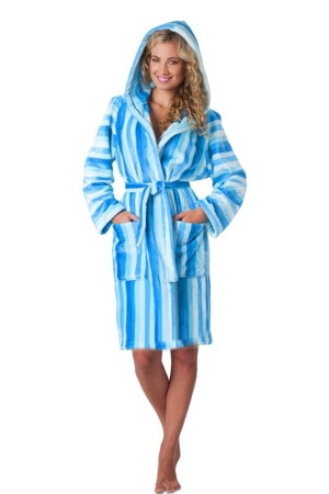 Hebký a sametový dámský 3/4 župan v azurových odstínech - NOVINKA. Kvalitní dámský župan je vyroben z materiálu flannel fleece, který je hedvábně jemný s vysokým leskem. Hřejivý dámský župan má sportovní 3/4 střih s klínovými rukávy. Župan má kapuci. Dámský župan je vhodný nejen po koupeli, ale pro volný čas či odpočinek. Dámský župan nabízíme v krásné barevné kombinaci laděné do tyrkysové barvy. Barva je ještě pestřejší a výraznější než na fotu. Materiál složení: 100% polyester