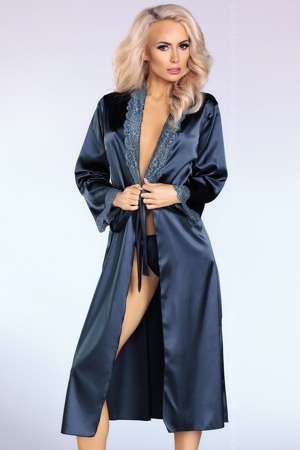 Dámský saténový župan Yasmeen LivCo - je vyroben z hebkého saténu - oblast dekoltu a dlouhé volnější rukávy zdobené krajkou - zavazuje se v pase na saténový pásek - délka pod kolena – podle výšky postavy
