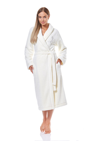 Dlouhý a pohodlný dámský župan, který je vyrobený z měkké tkaniny. Župan má šálový límec. Na jedné straně županu je ozdobná květinovým výšivka. Model má kapsy a v pase se zavazuje...