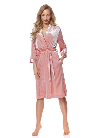 Elegantní dlouhý dámský župan, který je vyrobený ze sametového materiálu. Župan má na bocích pohodlné kapsy a zavazuje se v pase. Rukávy mají 7/8 délku. Složení: 100 % polyester.