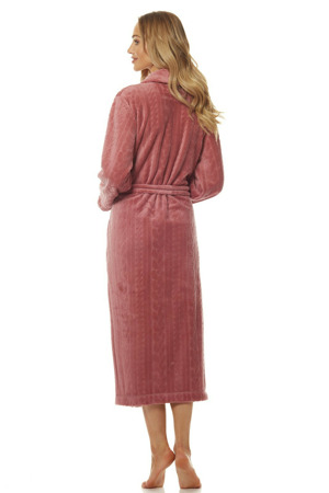 Dlouhý dámský župan se šálovým límcem. Župan je vyrobený z měkké tkaniny s efektním copánkovým pleteným vzorem. Model má pohodlné kapsy a v pase se zavazuje...