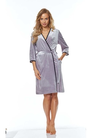 Elegantní dámský župan, který je vyrobený ze sametového materiálu. Model je obšitý lemovkou v kontrastní barvě. Župan má na bocích kapsy a v pase se zavazuje. Rukávy mají 3/4 délku...
