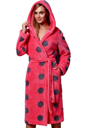 Dámský župan značky L&L vyrobený z měkké látky. Model má pohodlnou kapuci, boční kapsy a opasek, který je veden ve smyčkách a zajišťuje tak dokonalé přizpůsobení k tělu. Délka pod kolena. Vhodný na chladné večery. Materiál: 100% polyester.