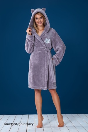 Komfortní a pohodlný dámský župan s kapucí, který je vyrobený z měkké látky typu "soft".Župan je krátký, zavazuje se v pase a má kapsičky. Na hrudníku je ozdobený aplikací.Složení: 100 % polyester.