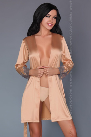 Elegantní dámský župan Omolarina, vyrobený z příjemné viskózy. Na rukávu i ramenou zdobený krajkou. Pásek kolem pasu pro snadné svázaní...