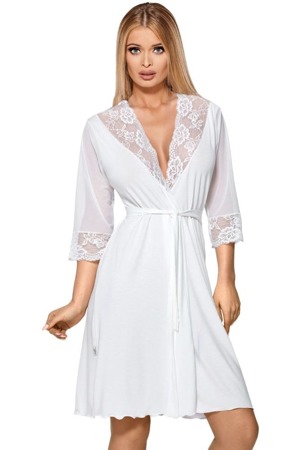 Lehoučký vzdušný župan zdobený krásnou krajkou, ušitý z elastického, příjemného materiálu viskózy v ecru barvě, vhodný také jako svatební...