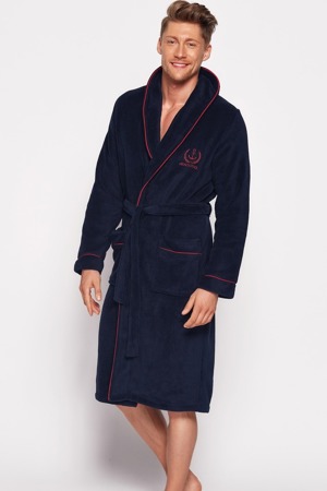 Pánský župan 35451 Sail Esotiq&henderson - tmavě modrá barva - délka pod kolena - materiál příjemný na dotek - s kapsami Materiálové složení:100% polyester