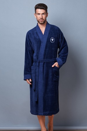 Pánský župan klasického střihu Fabio L&L z příjemného mikroplyše - župan nemá kapuci, zavazuje se v pase na pásek - na bocích jsou našité kapsy