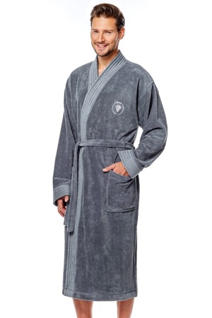 Pánský župan klasického střihu Fabio L&L z příjemného mikroplyše - župan nemá kapuci, zavazuje se v pase na pásek - na bocích jsou našité kapsy