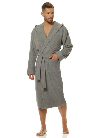 Krátký pánský župan s kapucí. Župan je vyrobený z měkké froté tkaniny a v pase se zavazuje. Na bocích jsou vnější kapsy. Model je měkký a příjemný na dotyk a při nošení je pohodlný a komfortní...