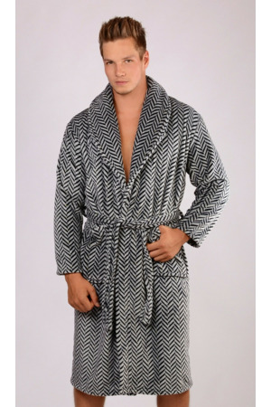 Pánský župan se šálovým límcem Denis. Krásný a elegantní pánský župan má praktické kapsy a opasek na převázání. Látka županu je oživena vytlačenými geometrickými vzory, jinak je župan jednobarevný. Použitý materiál je jemný a poddajný na dotek. Župan je vhodný i na denní nošení, oceníte ho obzvlášť v chladných dnech.