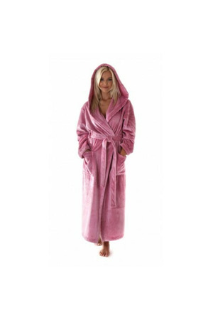 Hřejivý dlouhý župan s kapucí v jemné pudrové barvě. 100%...