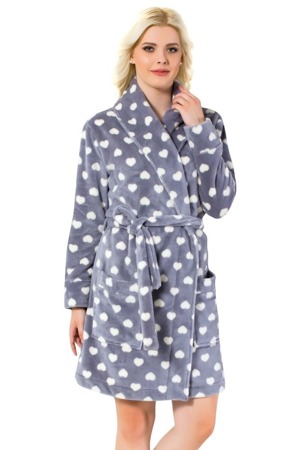 Dámský hřejivý župan z hebkého plyše se vzorem srdíček. Složení: 100% polyester