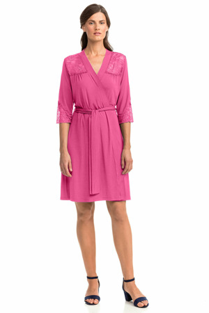 Dámský župan pro pocit pohodlí, krásy a něhy. Župan zdobí luxusní francouzská krajka na ramenou a kolem rukávu. Župan je vyrobený z kvalitní přírodní řecké bavlny s příměsi modalu. Oba typy tkanin poskytkují vysoké pohodlí, příjemný pocit na dotyk, prodyšnost a odolnost.barva: fuchsia (růžová), blue crest (tmavěmodrá).krajka3/4 rukáv s krajkouzavinovací střihpostanní kapsypásek na zavazovánídélka: 95 cmmateriál 93% Micro-modal +...